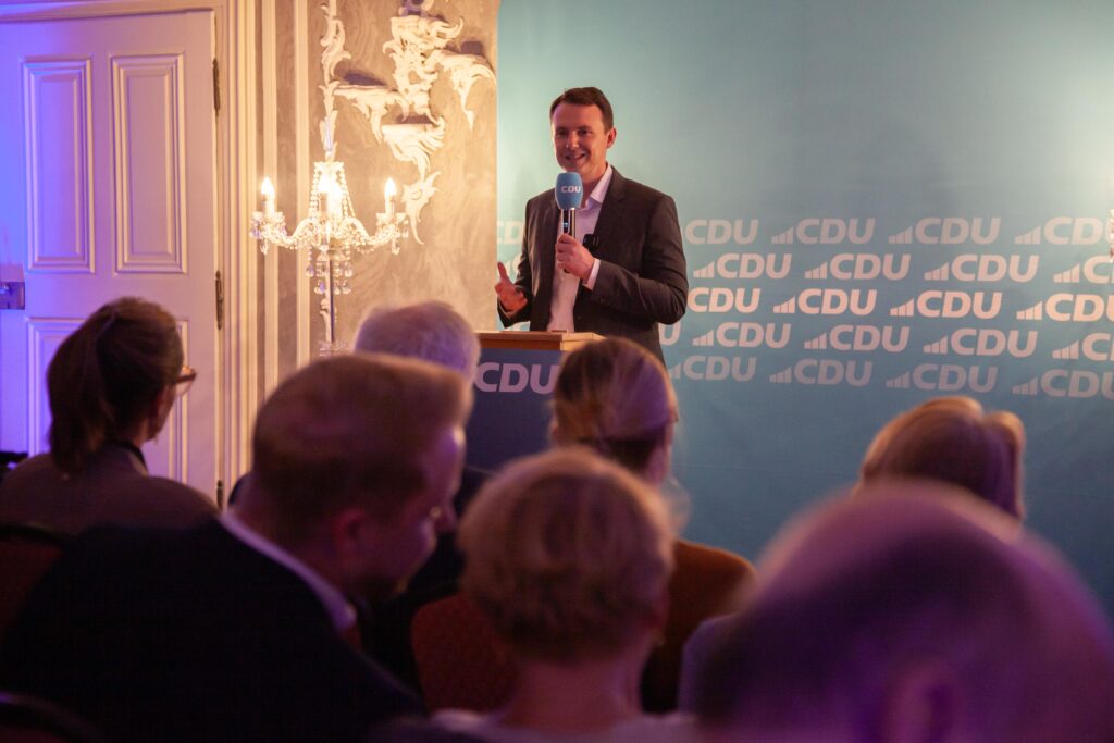 Zu seinem ersten „Berliner Abend“ hatte der heimische CDU-Bundestagsabgeordnete Pascal Reddig in das Schloss nach Langenselbold eingeladen und über 80 Interessierte kamen; so viele, dass noch eilig weitere Stühle aufgestellt werden mussten. Nach einer kurzen Begrüßung durch den CDU-Stadtverbandsvorsitzenden und Bürgermeisterkandidaten Florian Gibbe gab Reddig seinen Zuhörern Einblicke in aktuelle bundespolitische Themen, angereichert durch die ein oder andere persönliche Anekdote aus dem Berliner Politbetrieb.